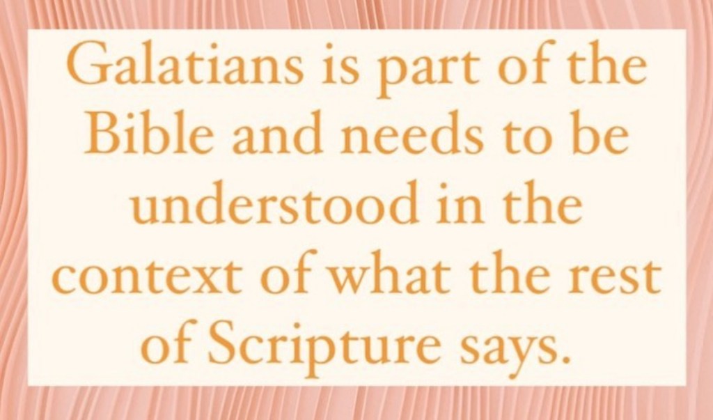 - Galatians is not stand-alone theology. It must be read in conjunction with the rest of the Scriptures. One cannot isolate Galatians to glean doctrine that goes against the other writings. And this includes the Old Testament.