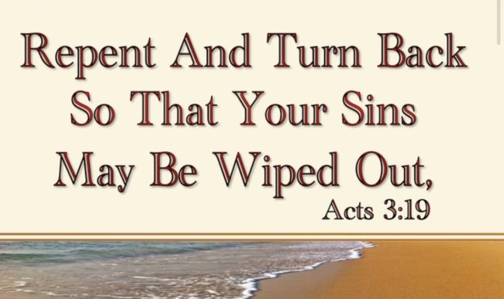 “Repent therefore and turn back, for the blotting out of your sins, in order that times of refreshing might come from the presence of the Master,” – Acts 3:19