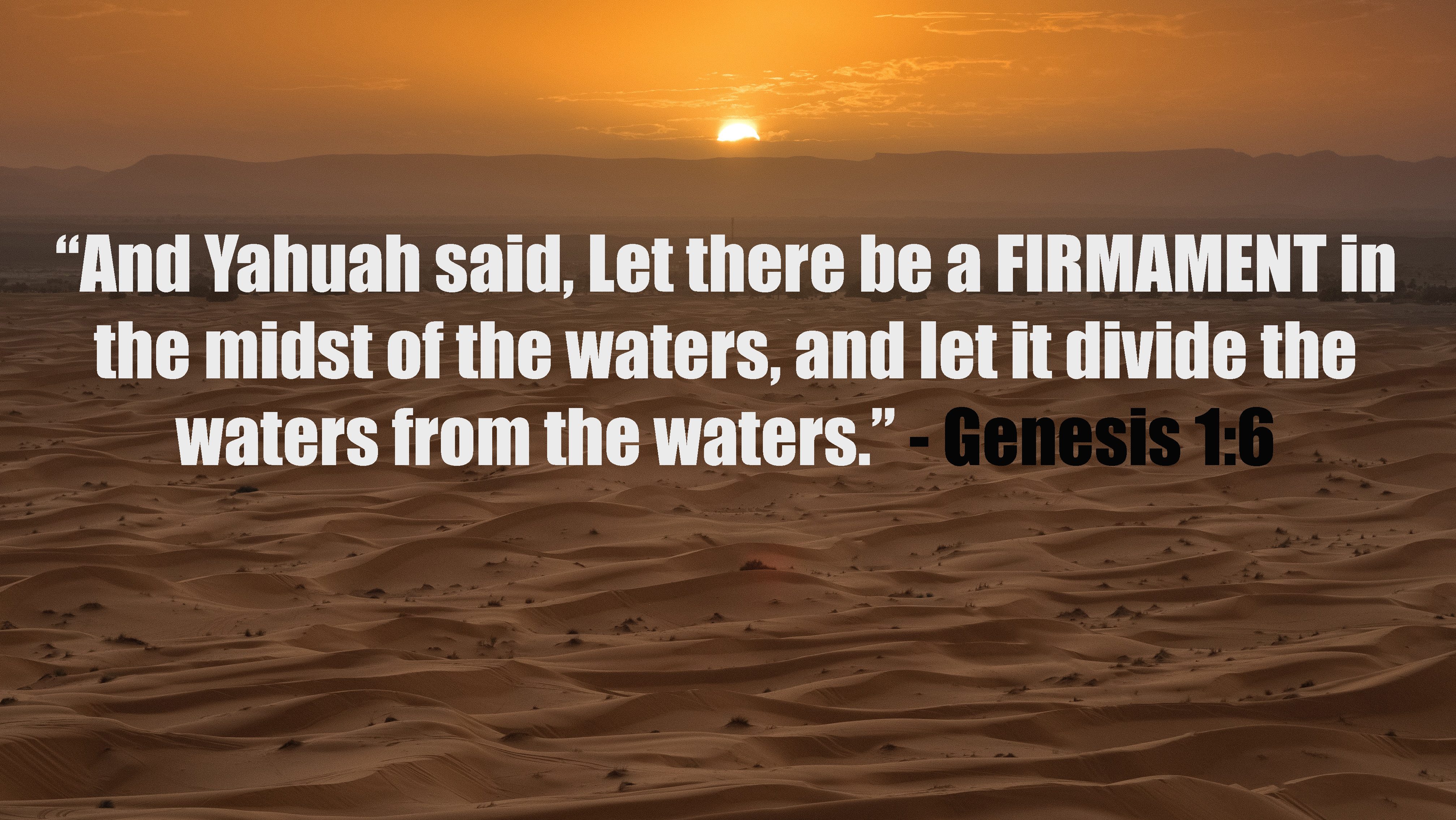 “And Yahuah said, Let there be a FIRMAMENT in the midst of the waters, and let it divide the waters from the waters. And Yahuah made the FIRMAMENT, and divided the waters which were under the FIRMAMENT from the waters which were above the FIRMAMENT: and it was so. And Yahuah called the FIRMAMENT Heaven.” – Genesis 1:6-8