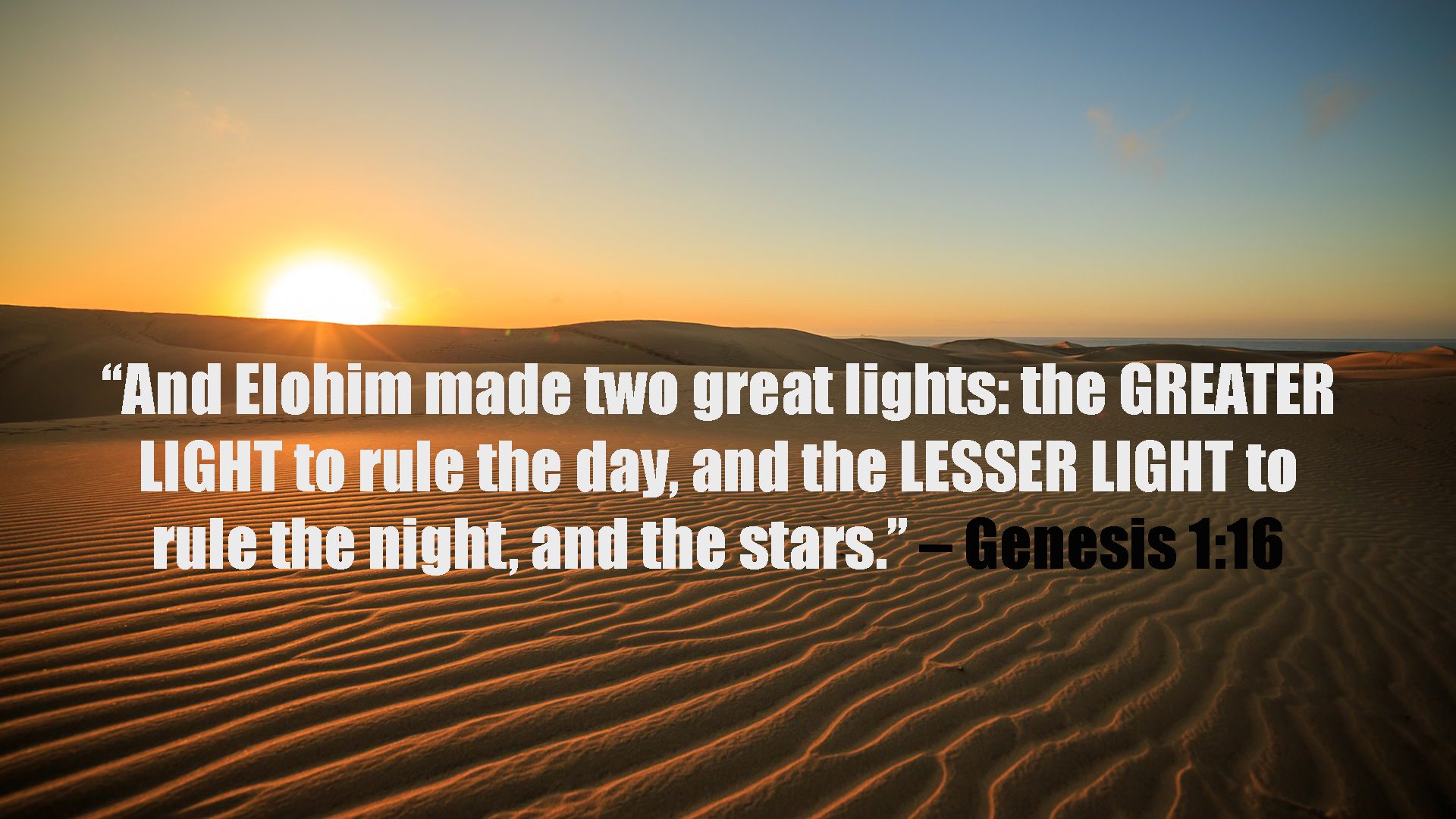 “And Elohim made two great lights: the GREATER LIGHT to rule the day, and the LESSER LIGHT to rule the night, and the stars.” – Genesis 1:16