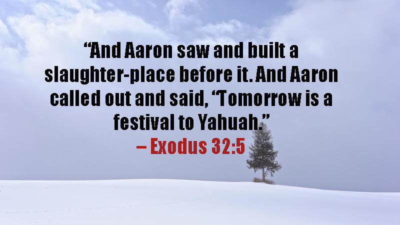 “And Aaron saw and built a slaughter-place before it. And Aaron called out and said, “Tomorrow is a festival to Yahuah.” – Exodus 32:5