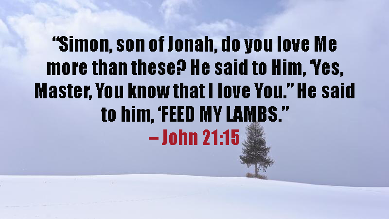 “Simon, son of Jonah, do you love Me more than these? He said to Him, ‘Yes, Master, You know that I love You.” He said to him, ‘Feed My lambs.” – John 21:15