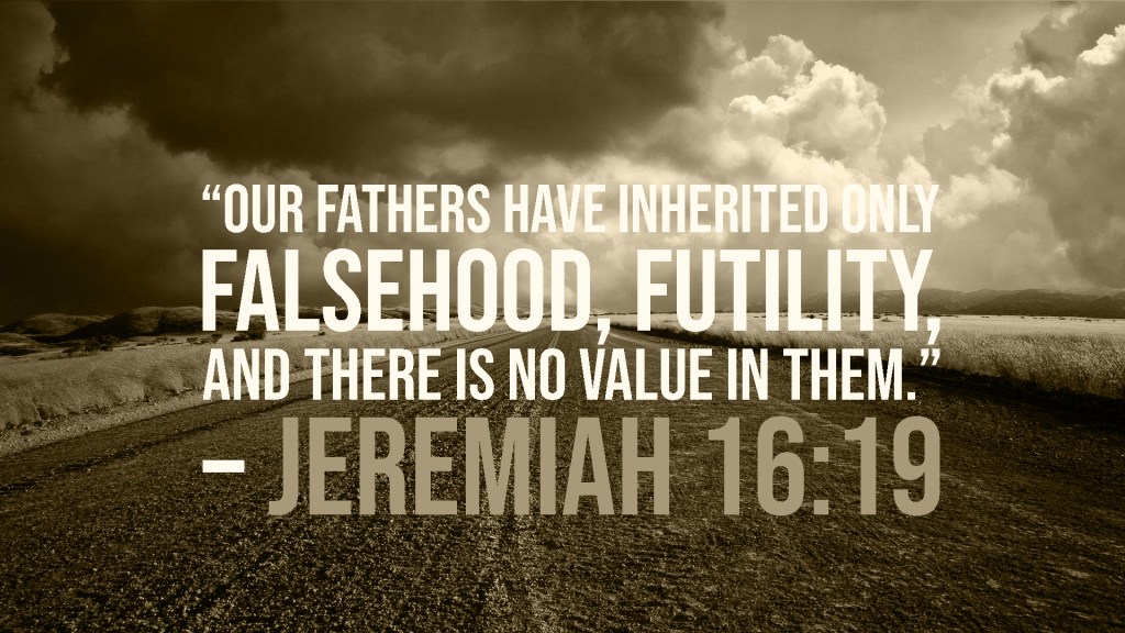 “O Yah, my strength and my stronghold and my refuge, in the day of distress the nations shall come to You from the ends of the earth and say, “Our fathers have INHERITED ONLY FALSEHOOD, FUTILITY, and there is no value in them.” – Jeremiah 16:19